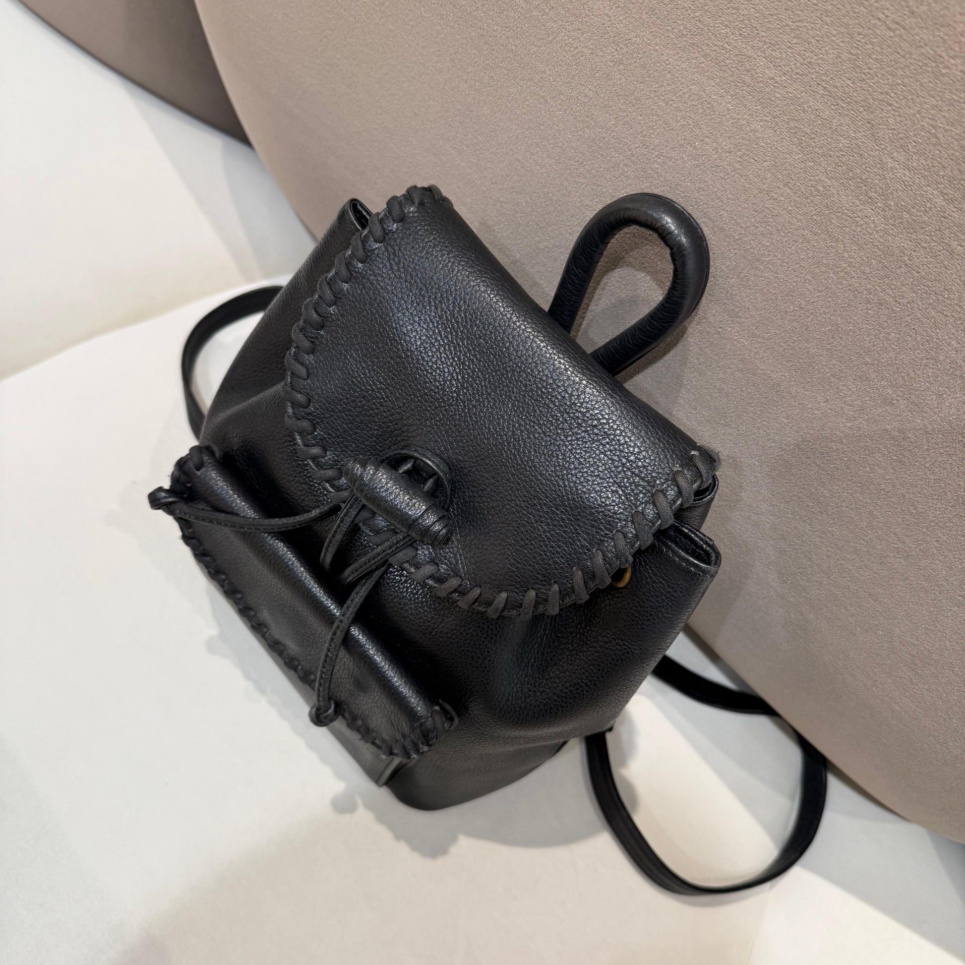 Black Leather Backpack With Soft, Naturally Aged Texture