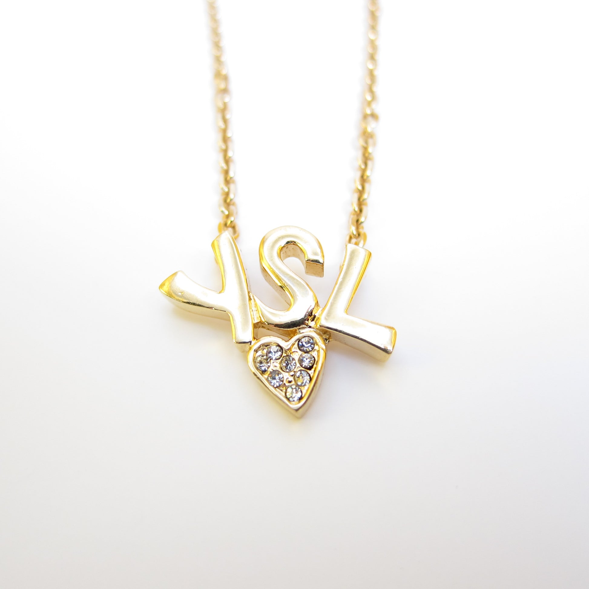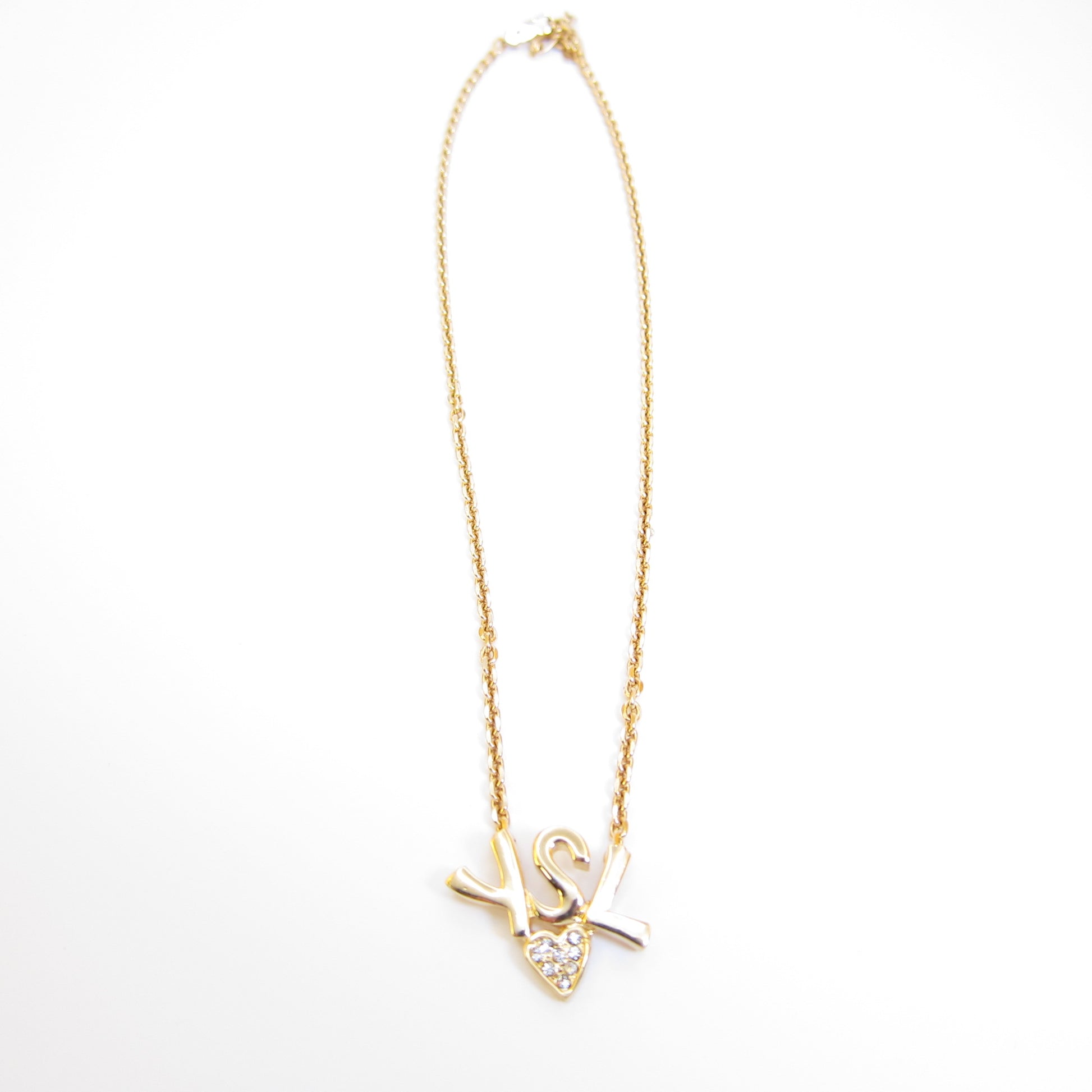 Yves Saint Laurent Vintage YSL Logo and Heart with Rhinestone Golden Necklace