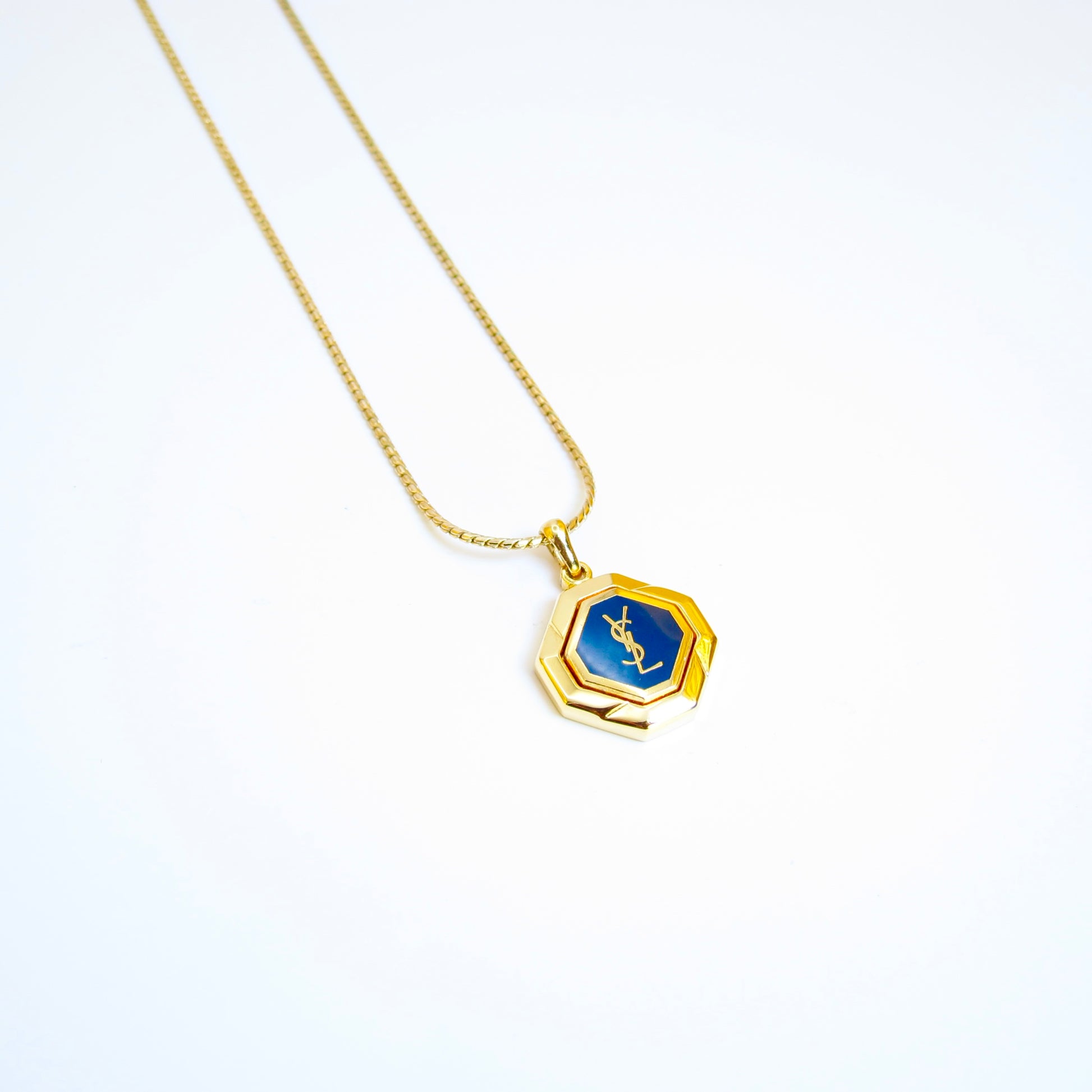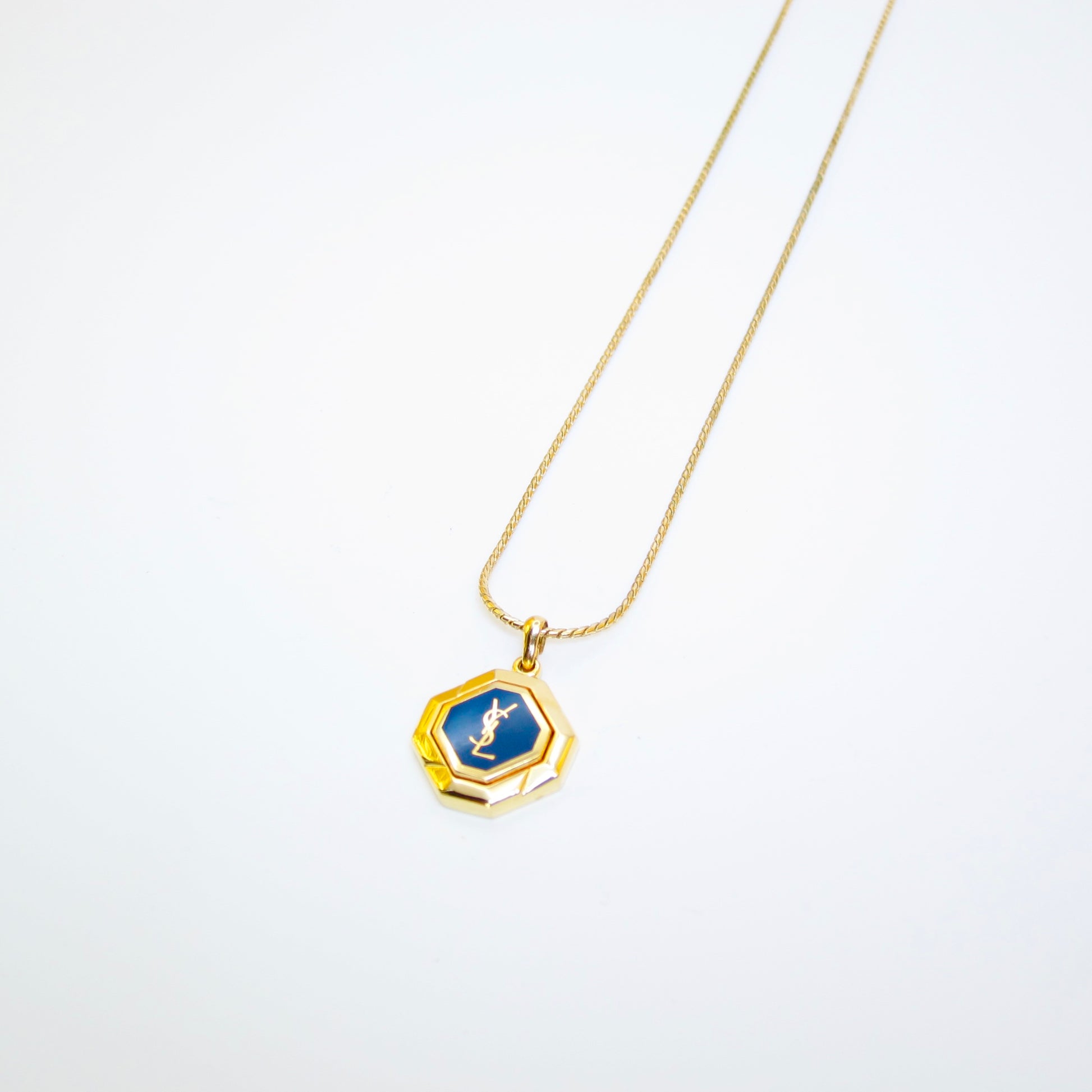 Yves Saint Laurent Vintage YSL Logo on Octagon Black Golden Necklace