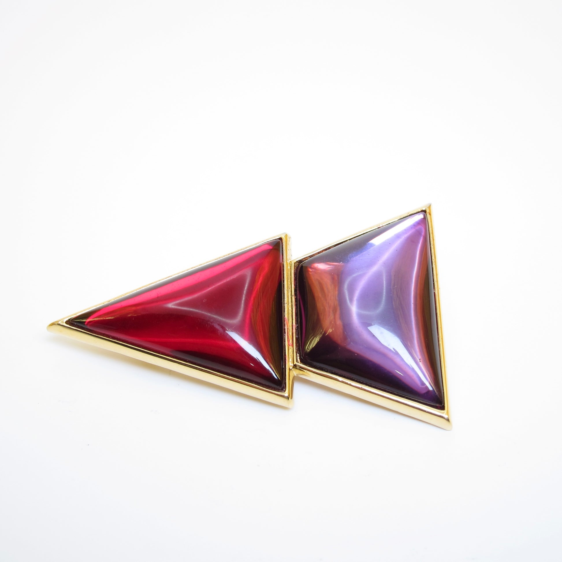 Yves Saint Laurent Vintage Purple and Red Triangle Golden Brooch