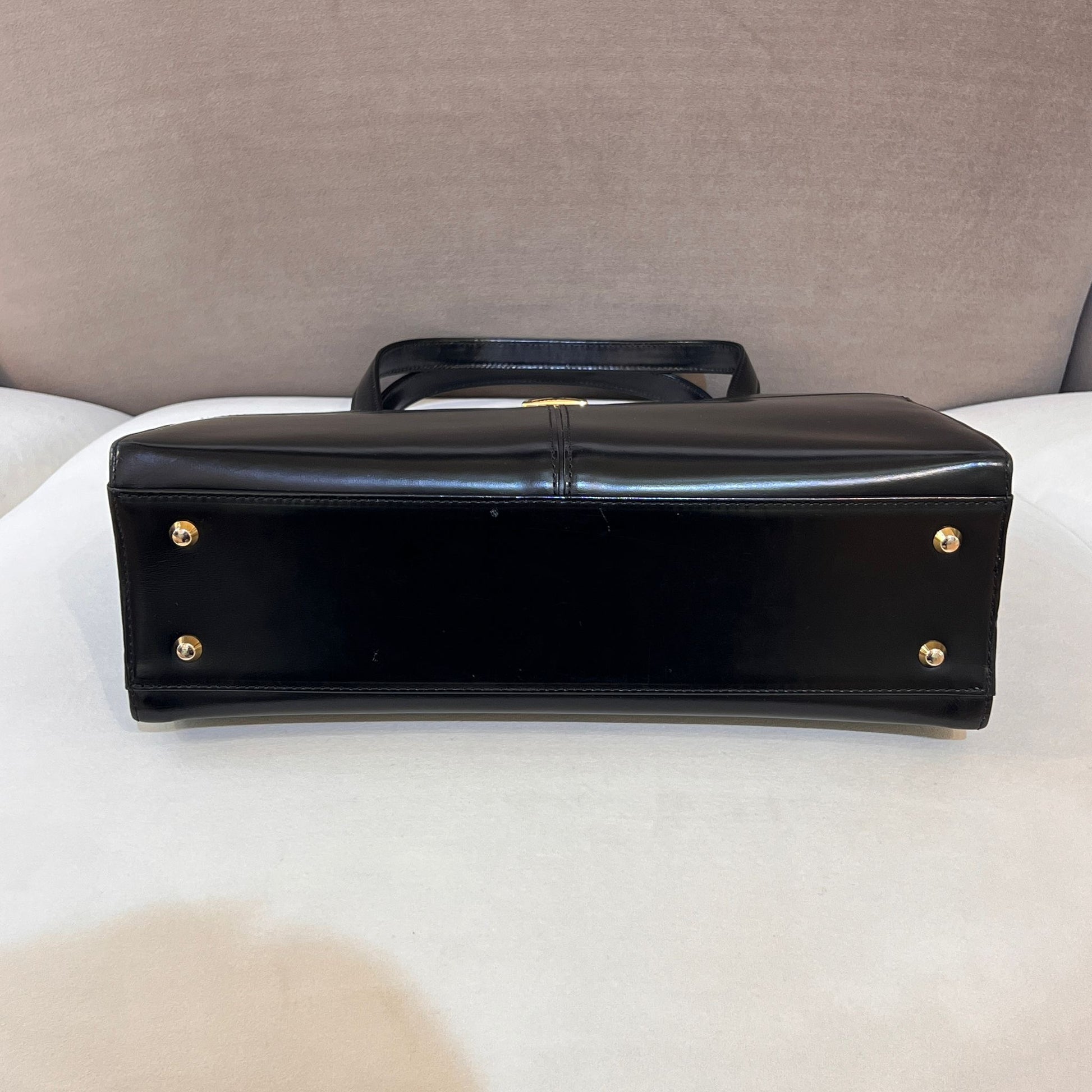 這款 Yves Saint Laurent 復古手袋以簡約線條與金屬標誌設計為特色,展現品牌一貫的巴黎優雅氣質。順滑黑皮革與方形結構的結合,散發出歷久不衰的經典魅力。