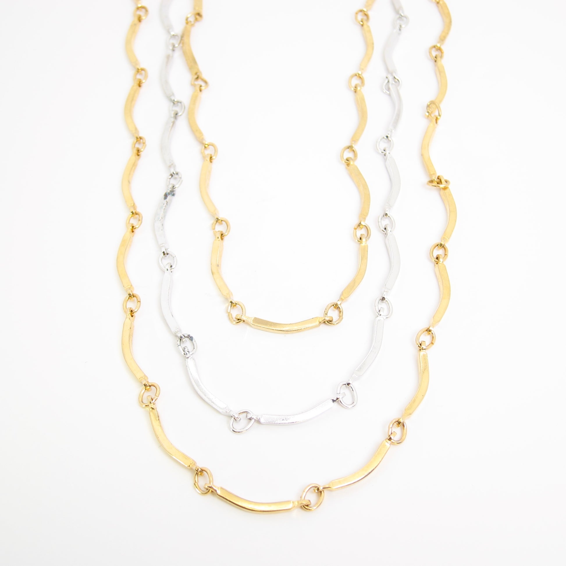 3-Row Two Tone Long Necklace