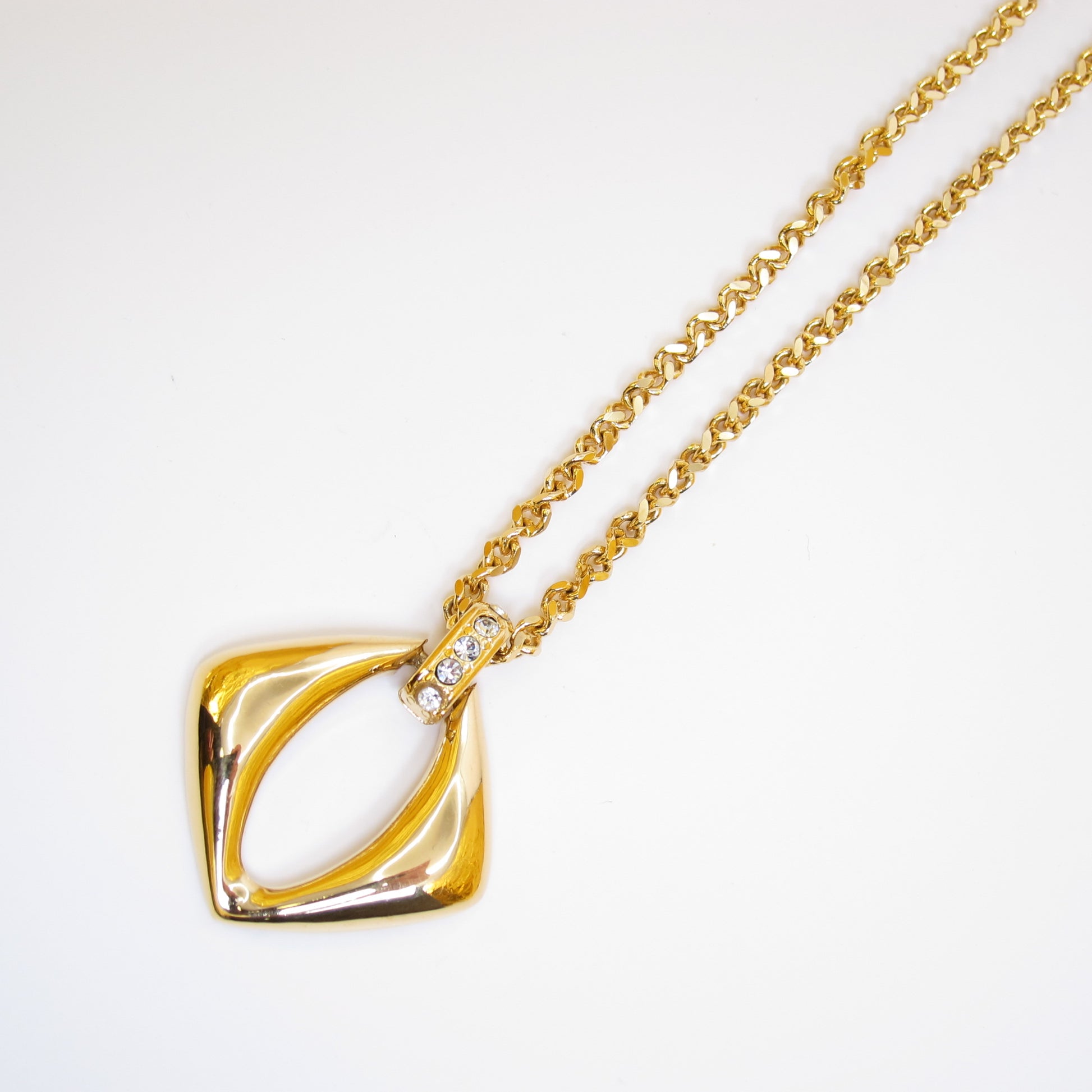 Yves Saint Laurent Vintage Rhombus and Rhinestone Pendant Golden Long Necklace