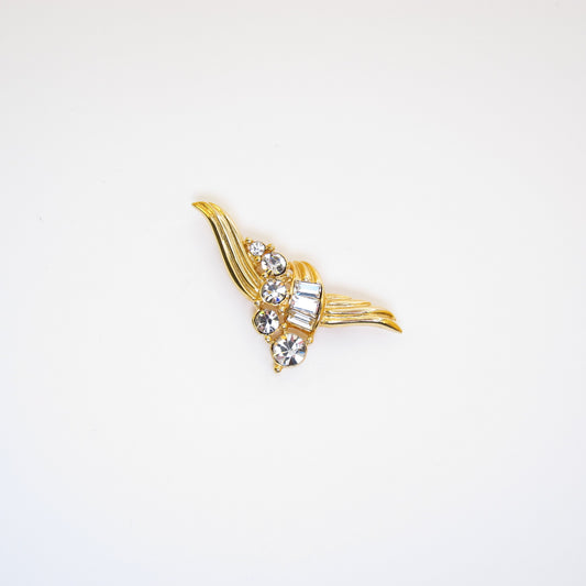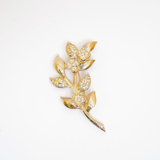 Christian Dior Vintage Flower Motif and Rhinestone Golden Brooch