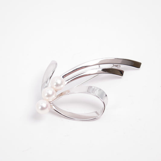 Mikimoto Vintage Ribbon with Akoya Pearl Silver Brooch