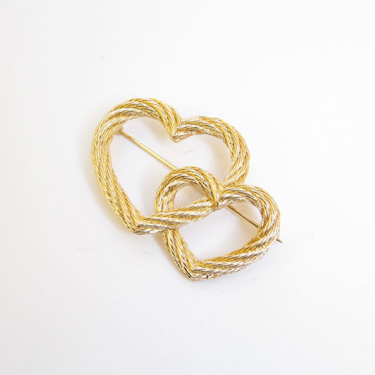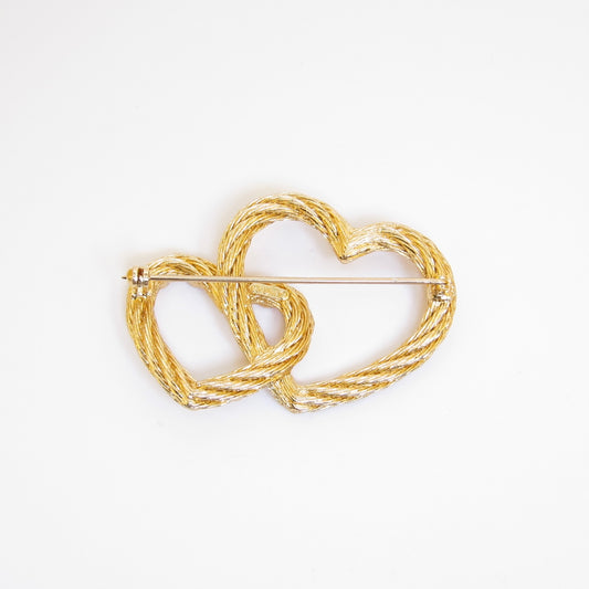 Christian Dior Vintage Double Heart with Rhinestone Golden Brooch