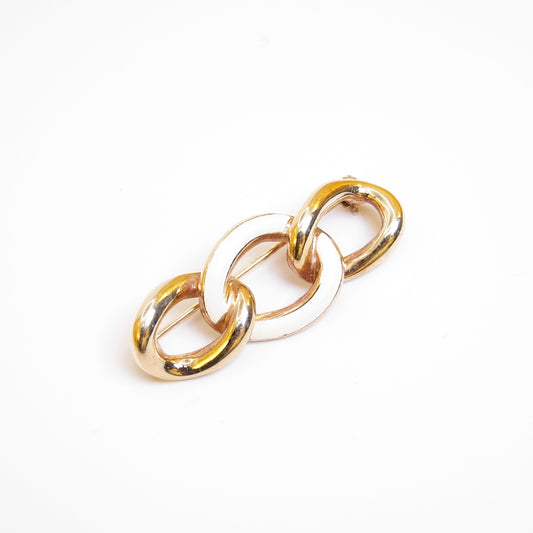 Christian Dior Vintage White and Golden Triple Loop Chain Link Brooch
