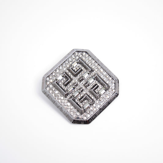 Givenchy Vintage 4G Logo with Rhinestone Space Grey Brooch