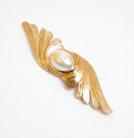 Christian Dior Vintage Stylish Pearl and Golden Brooch