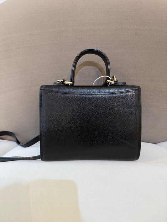 Burberry Vintage Black Grained Leather Gold Clasp 2-Way Handbag