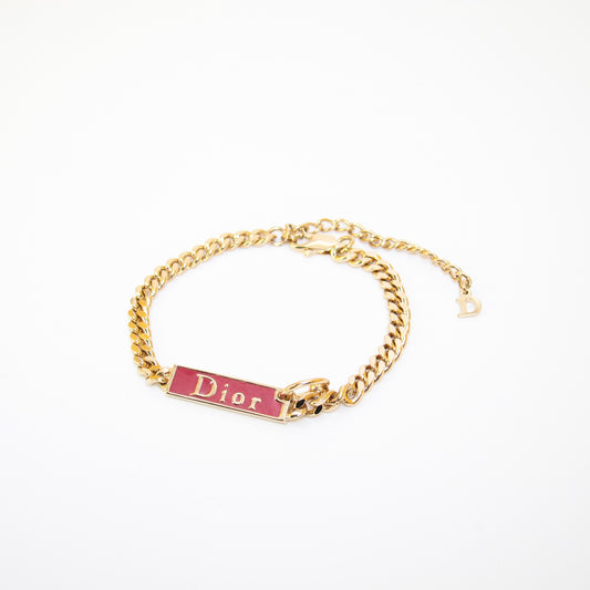 Christian Dior Vintage Dior Logo in Red and Golden Bracelet