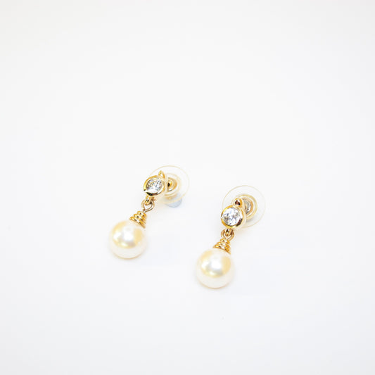 Christian Dior Vintage Pearl and Rhinestone Golden Earrings