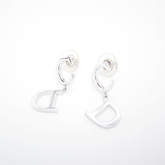 Christian Dior Vintage CD Logo Dandling Pendant Silver Necklace