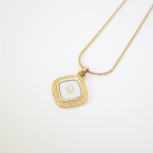 Christian Dior Vintage Dior Logo on Rhombus Silver and Golden Necklace