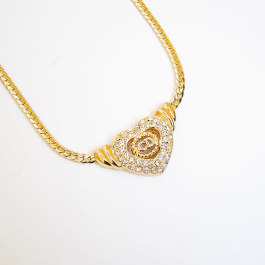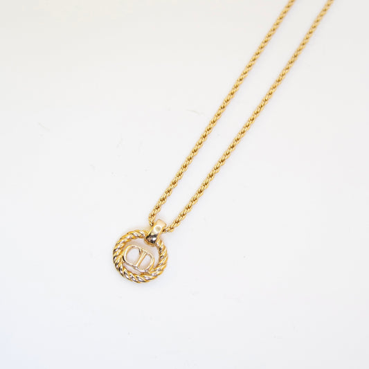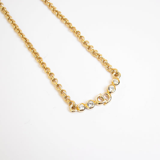 Christian Dior 復古 CD 標誌和水鑽金色項鍊