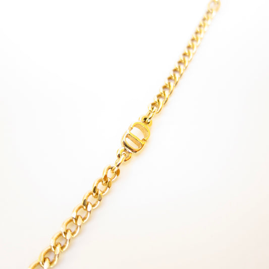 Christian Dior Vintage Stylish Rhinestone Golden Necklace