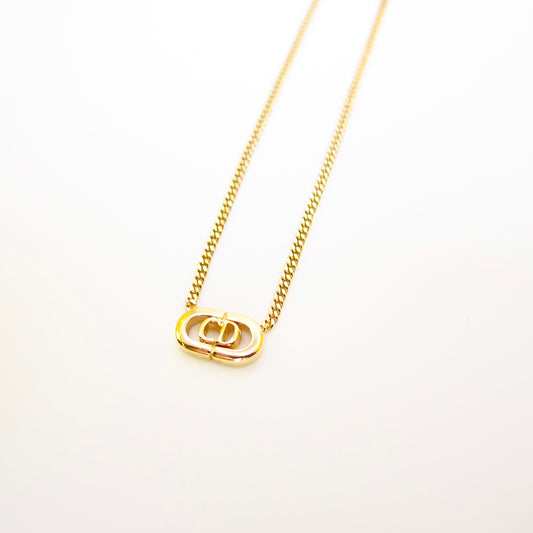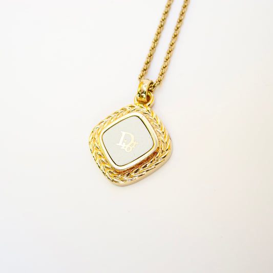 Christian Dior Vintage Dior Logo on Rhombus Silver and Golden Necklace