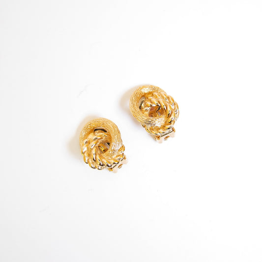 Christian Dior 復古 Dior 標誌金色鎖扣夾式耳環