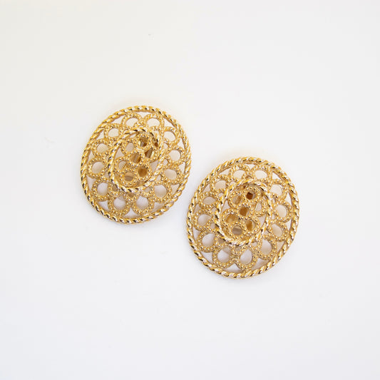 Christian Dior 復古葉子圖案鑲鑽金色夾式耳環