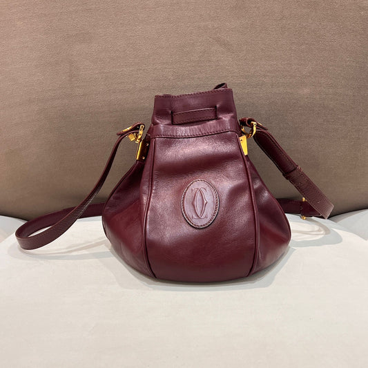 Cartier Vintage Brown Leather Drawstring Shoulder Bag