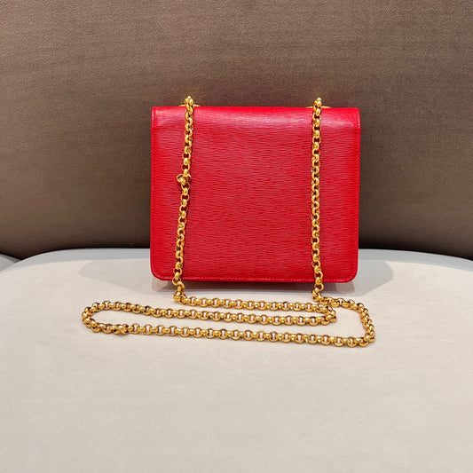 Chloé Vintage Red Grained Leather Chain Shoulder Bag