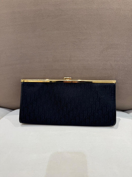 Christian Dior Vintage Trotter Logo 黑色帆布金色搭扣手拿包