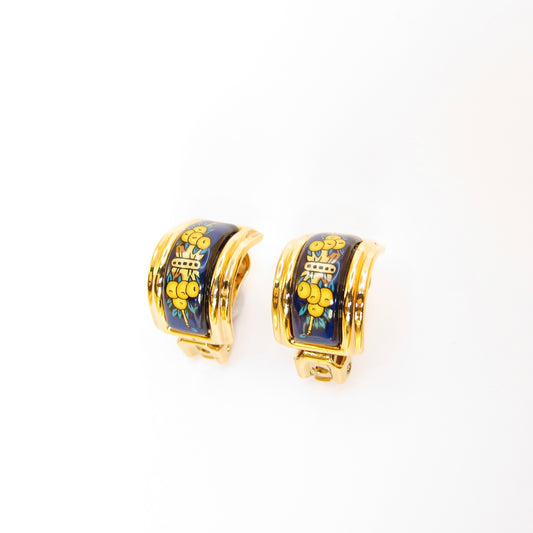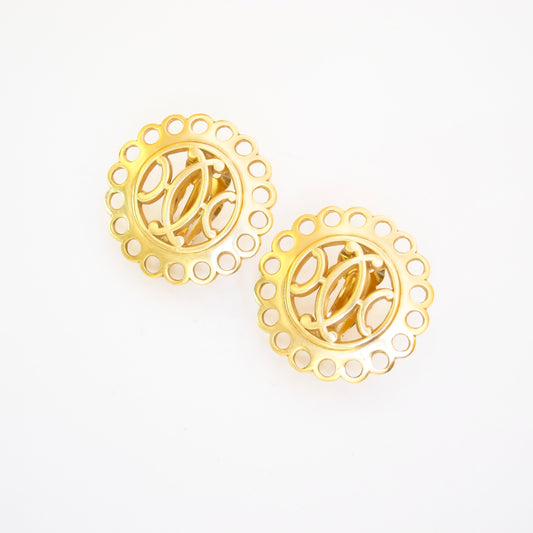 Hermes Vintage Stylish Round Shape Golden Clip-on Earrings