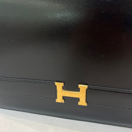 Hermes Vintage Round Shape Black Enamelled Golden Clip-on Earrings