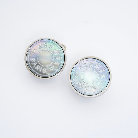 Hermes Vintage Serie Shell Face Silver Clip-on Earrings