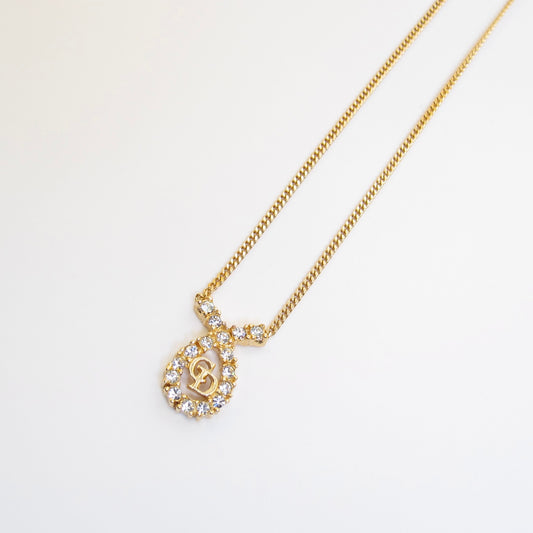 Christian Dior Vintage CD Logo in Drop Shape with Rhinestone Golden Necklace