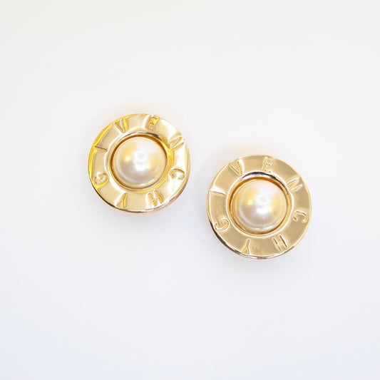Givenchy Vintage Givenchy Logo and Pearl Golden Clip-on Earrings
