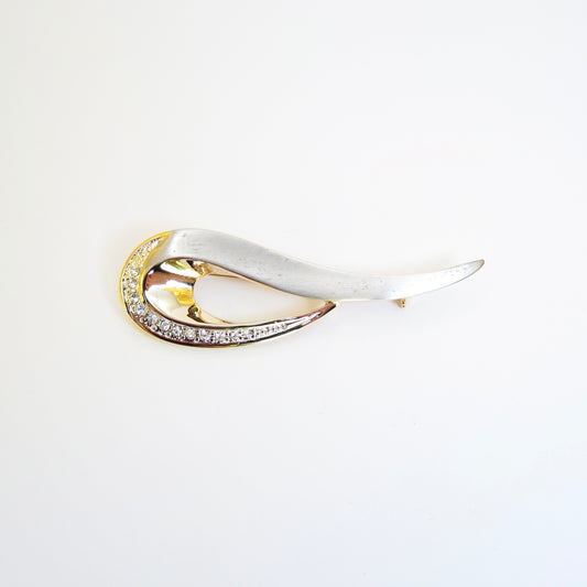 Pierre Cardin Vintage Stylish Rhinestone Silver and Golden Brooch