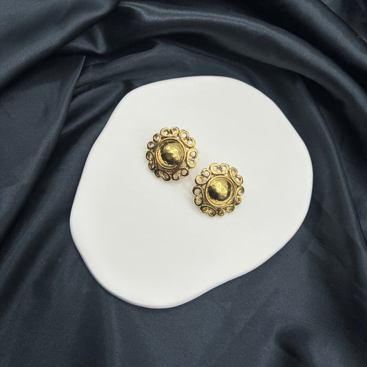Yves Saint Laurent 伊夫·聖羅蘭中古金色花卉圓形夾式耳環