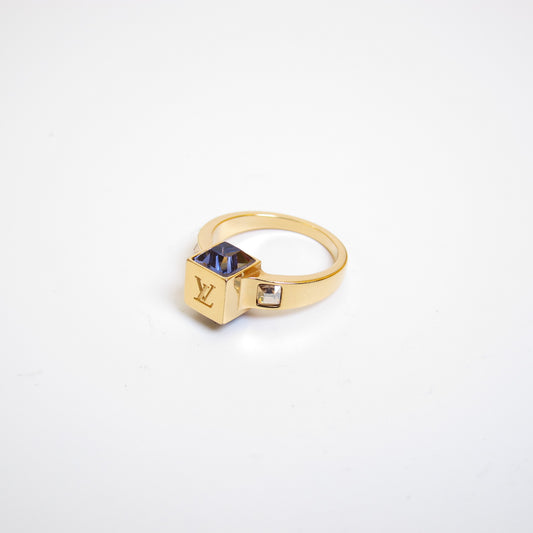 Fendi 復古 Fendi 標誌,藍色寶石金戒指