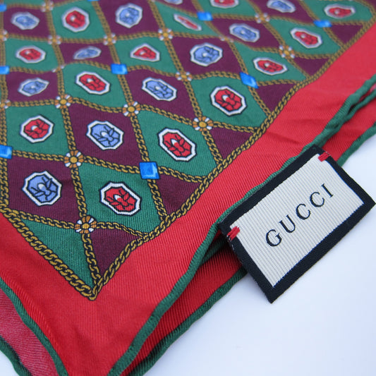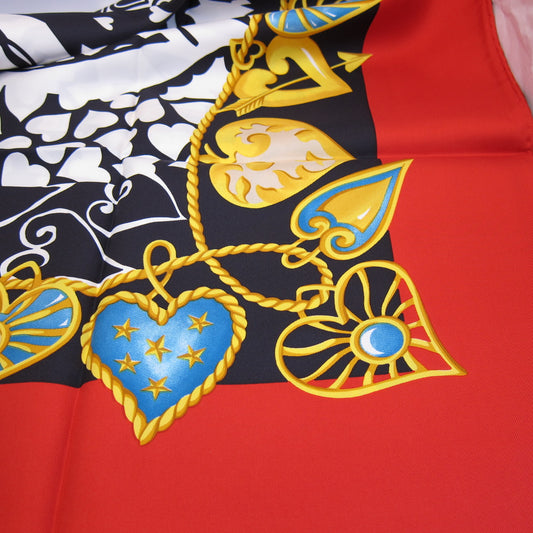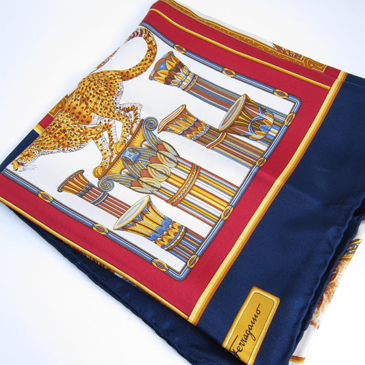 Ferragamo 復古動物圖案紅色和深藍色真絲圍巾