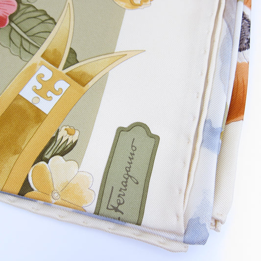 菲拉格慕 (Ferragamo) 復古花卉與動物圖案真絲圍巾