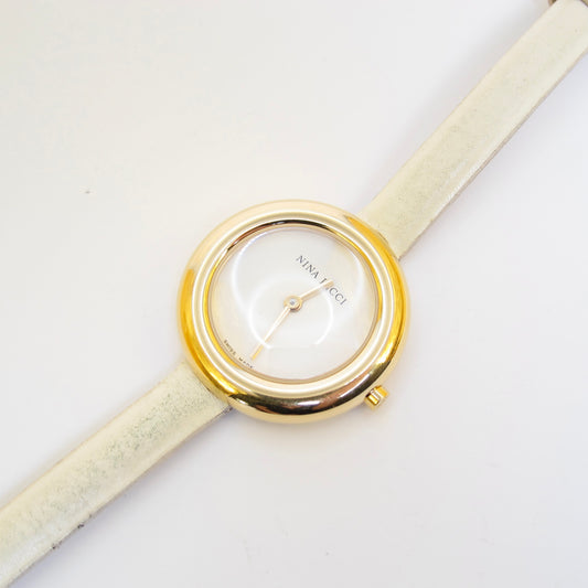 Nina Ricci Vintage Round White Face Golden Watch with Ivory Leather Strap