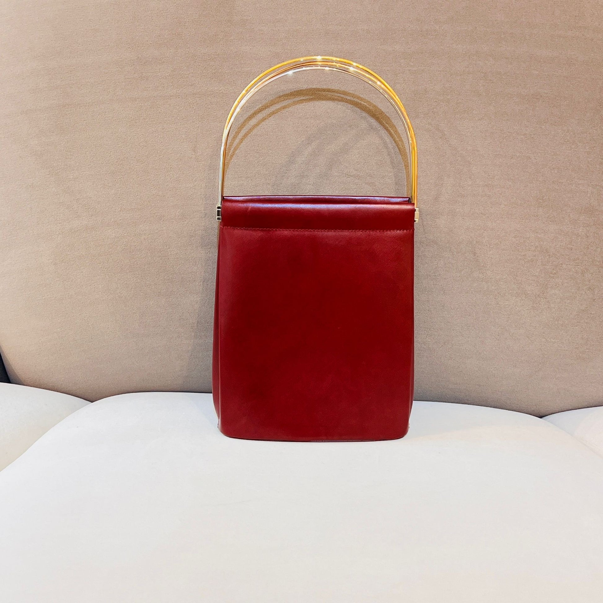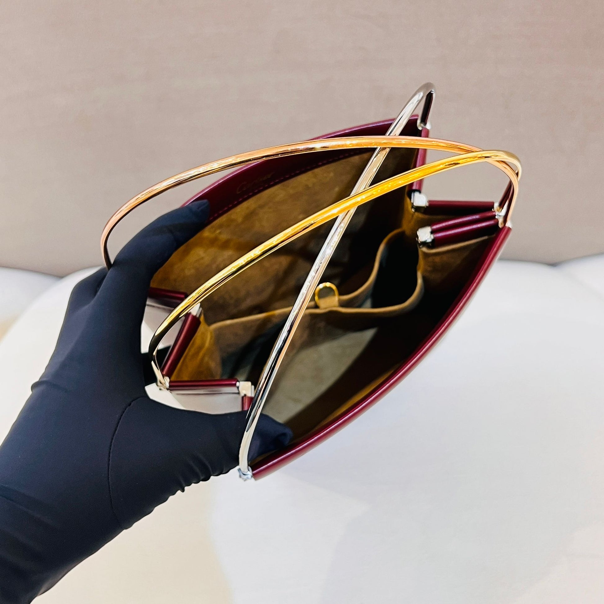 Cartier Vintage Trinity Bordeaux Leather Gold Handle Handbag
