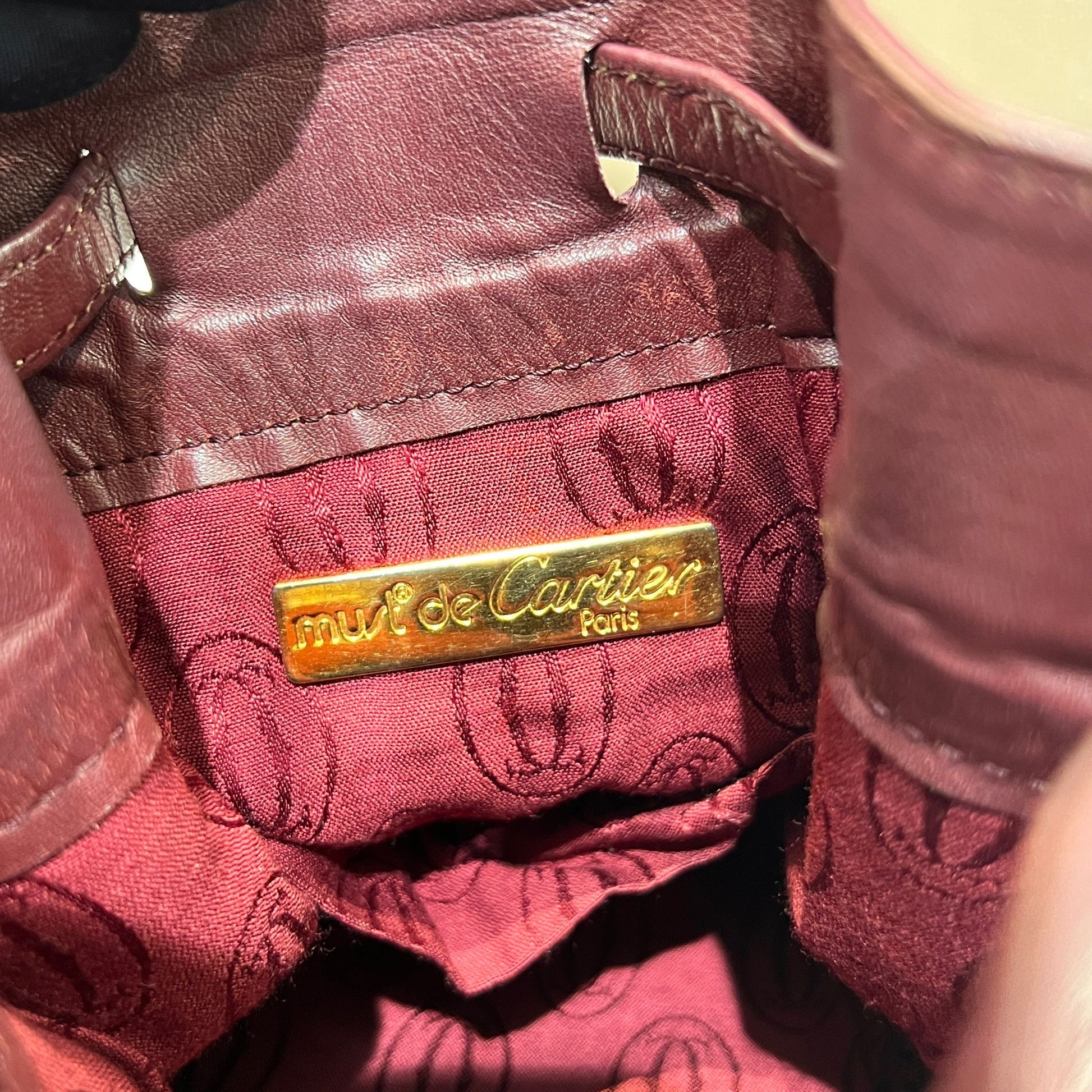 Cartier Vintage Brown Leather Drawstring Shoulder Bag