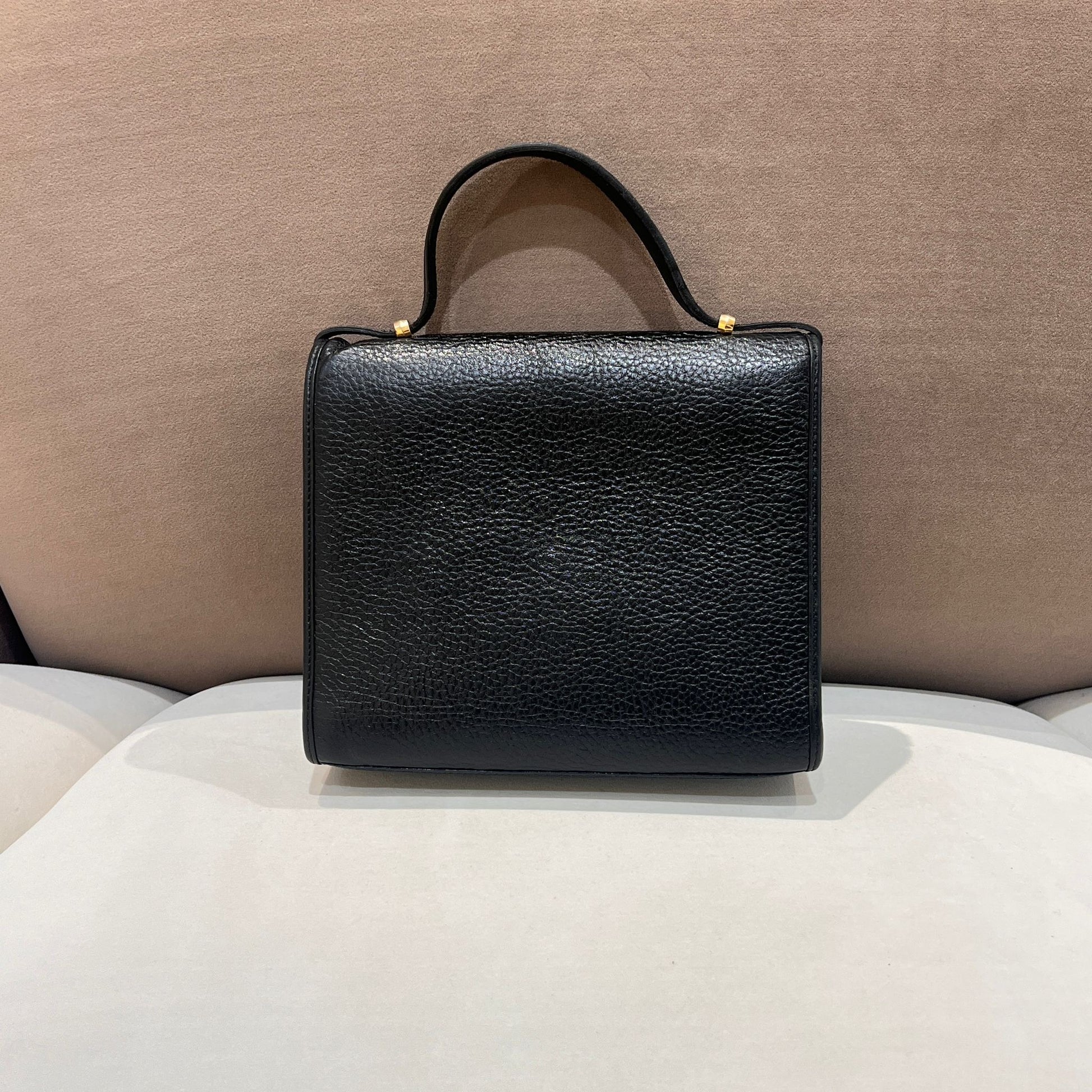 Christian Dior Vintage Black Grained Leather Top Handle Handbag With Oval Logo Clasp