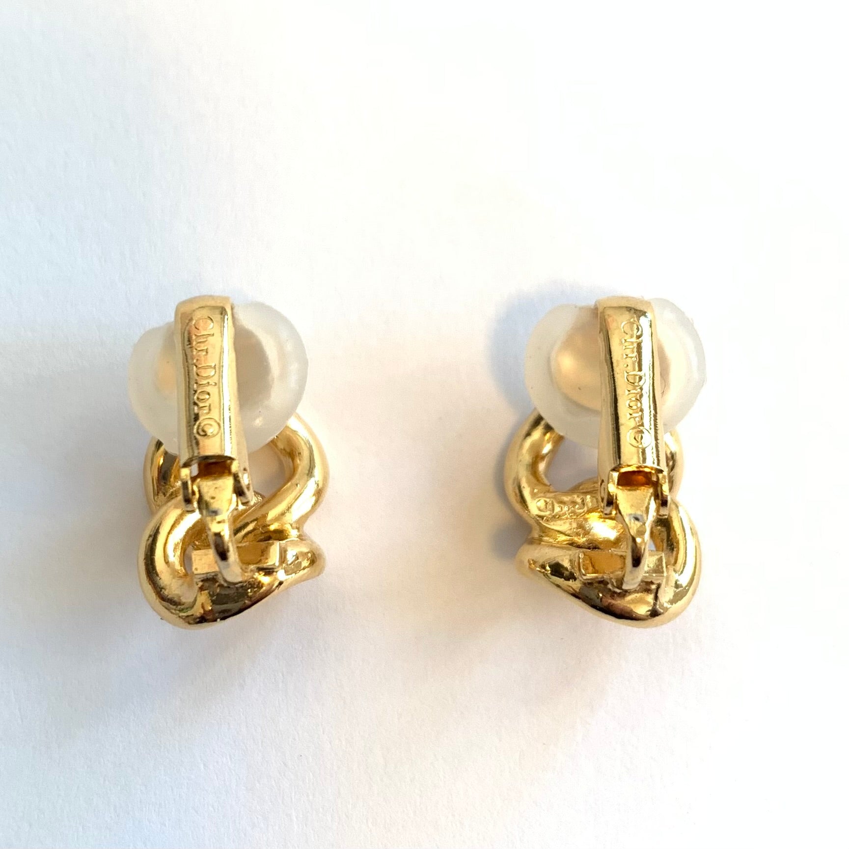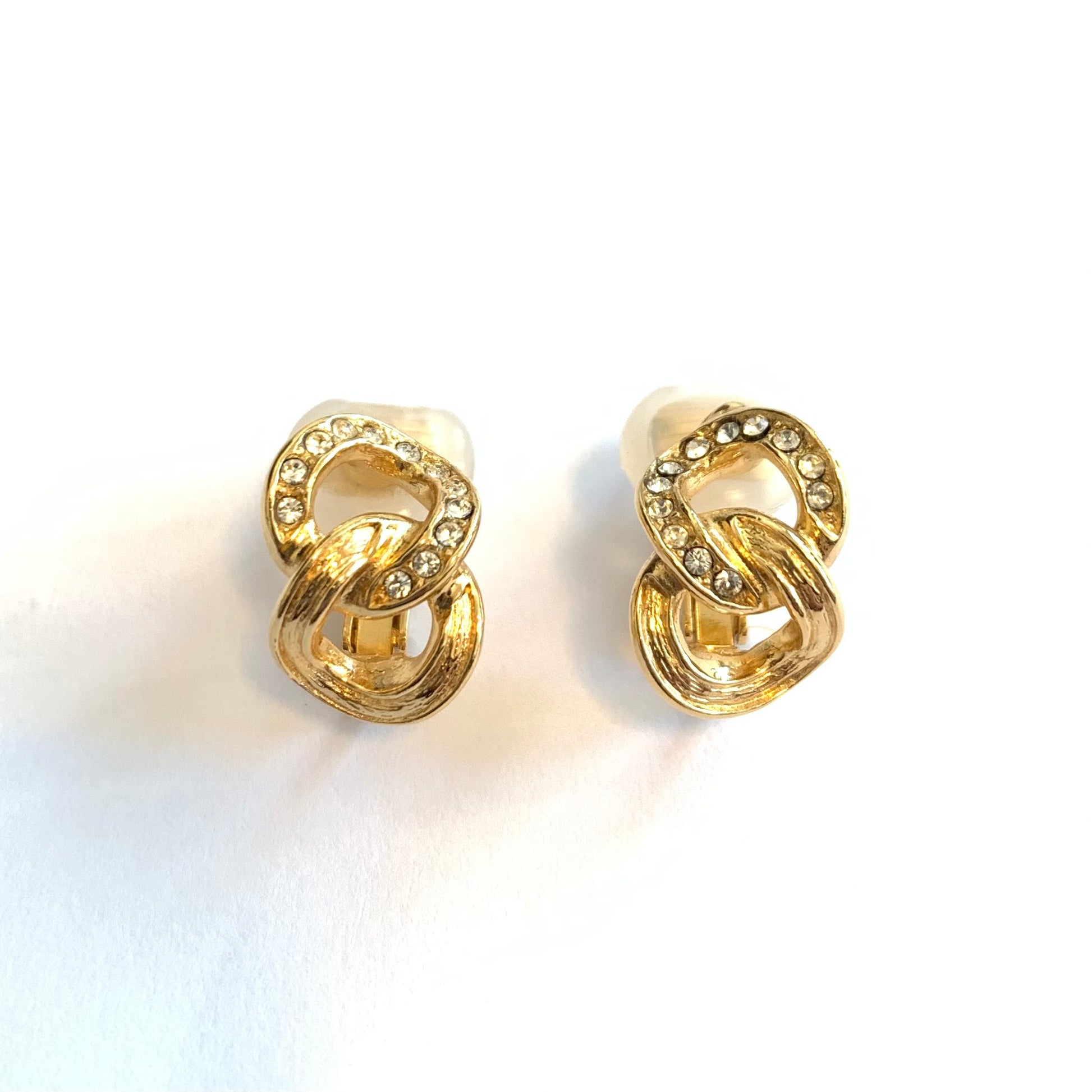 Christian Dior 復古黑色和水鑽扭紋金色夾式耳環