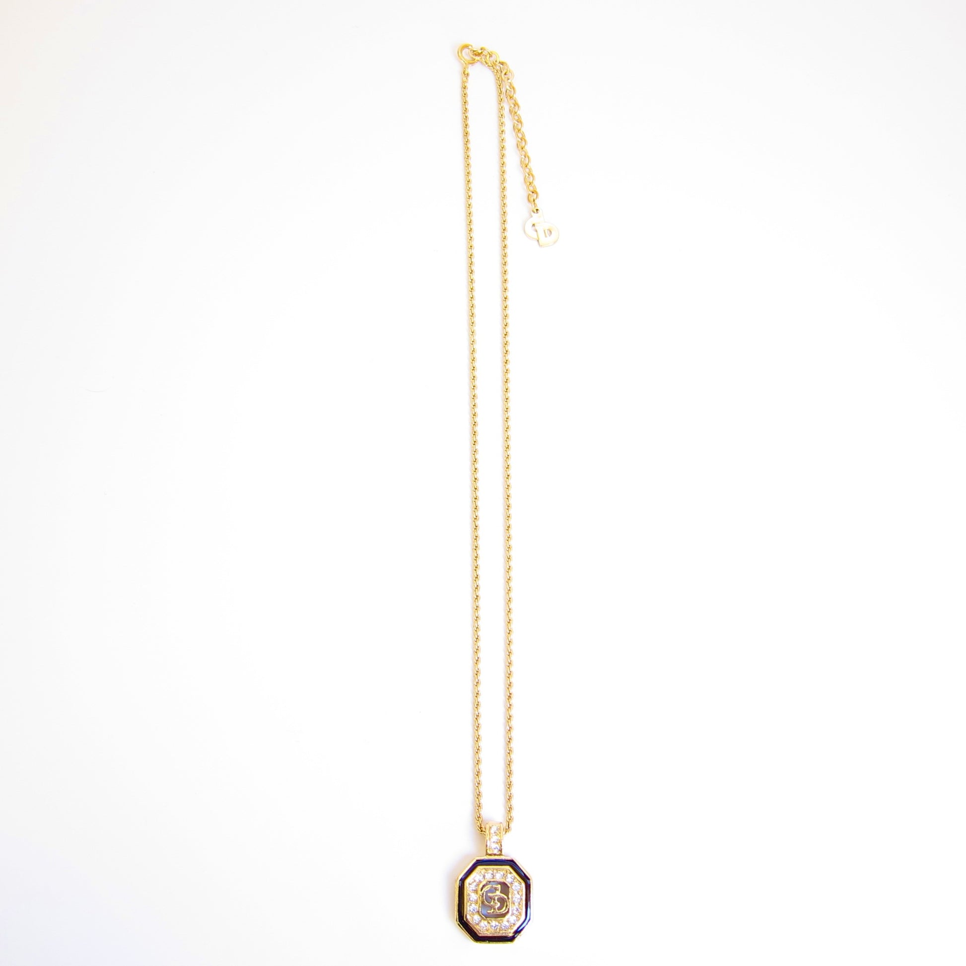 Christian Dior Vintage CD Logo in Octagon with Rhinestone Black and Golden Necklace