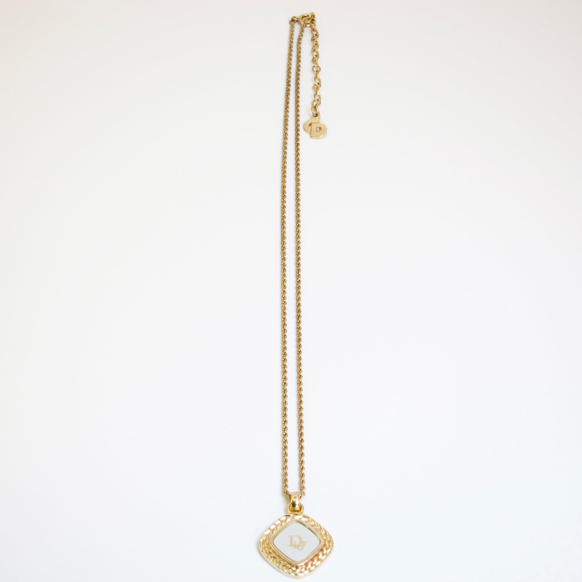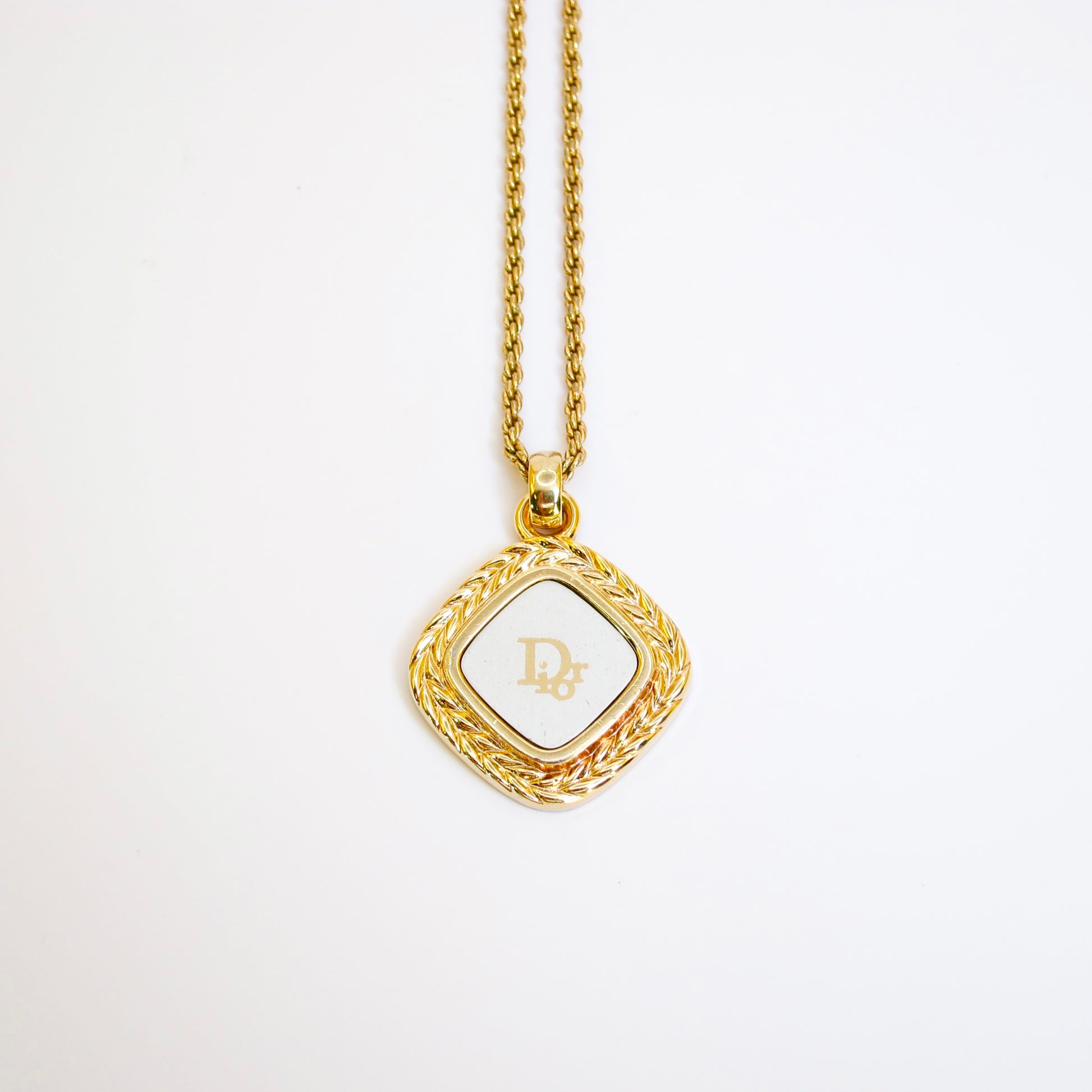 Christian Dior Vintage Dior Logo on Rhombus Silver and Golden Necklace