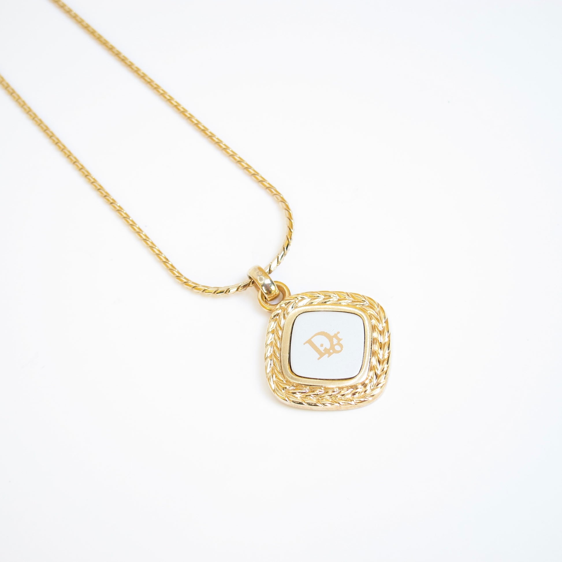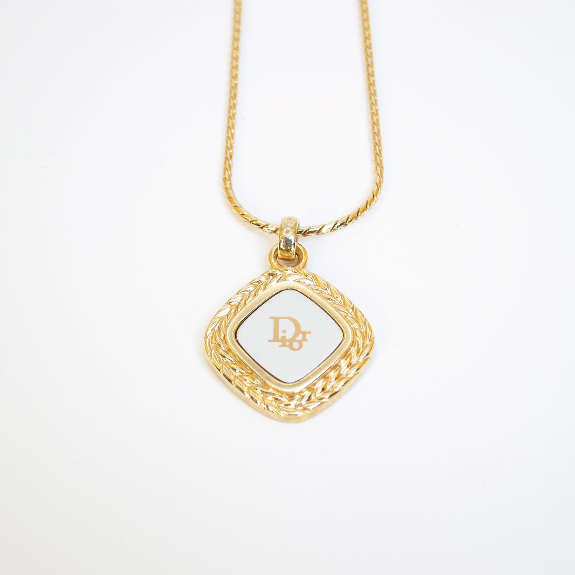 Christian Dior Vintage Dior Logo on Rhombus Silver and Golden Necklace