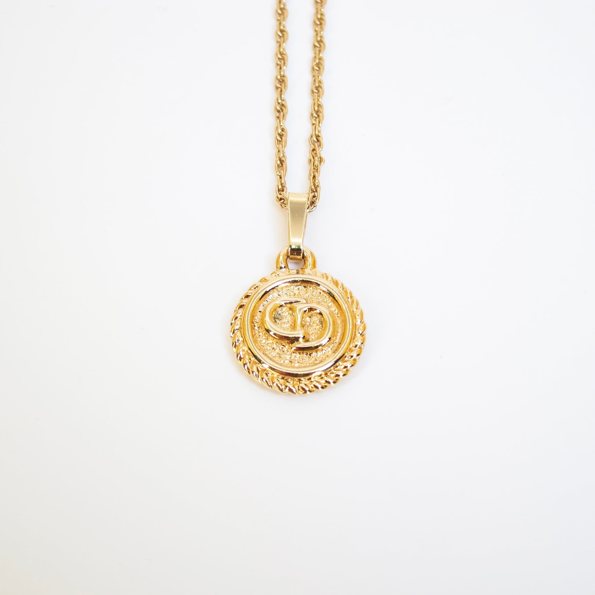Christian Dior Vintage CD Logo in Circle Golden Necklace