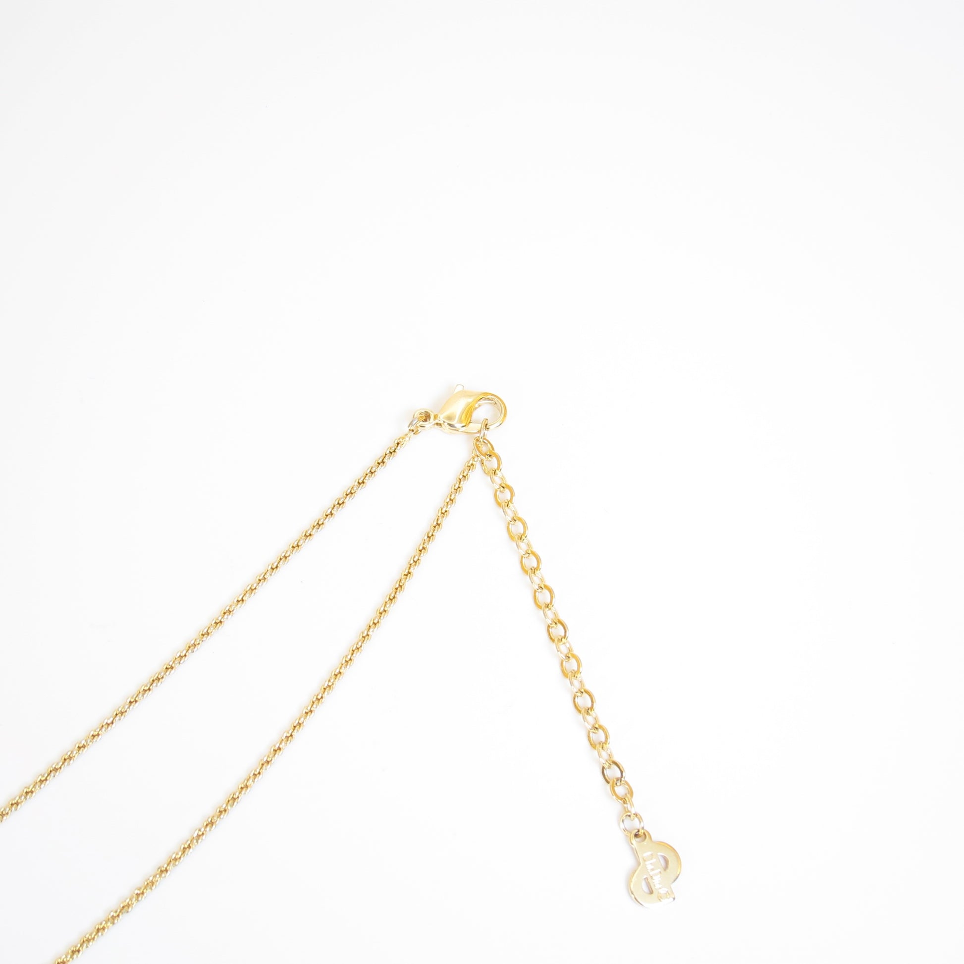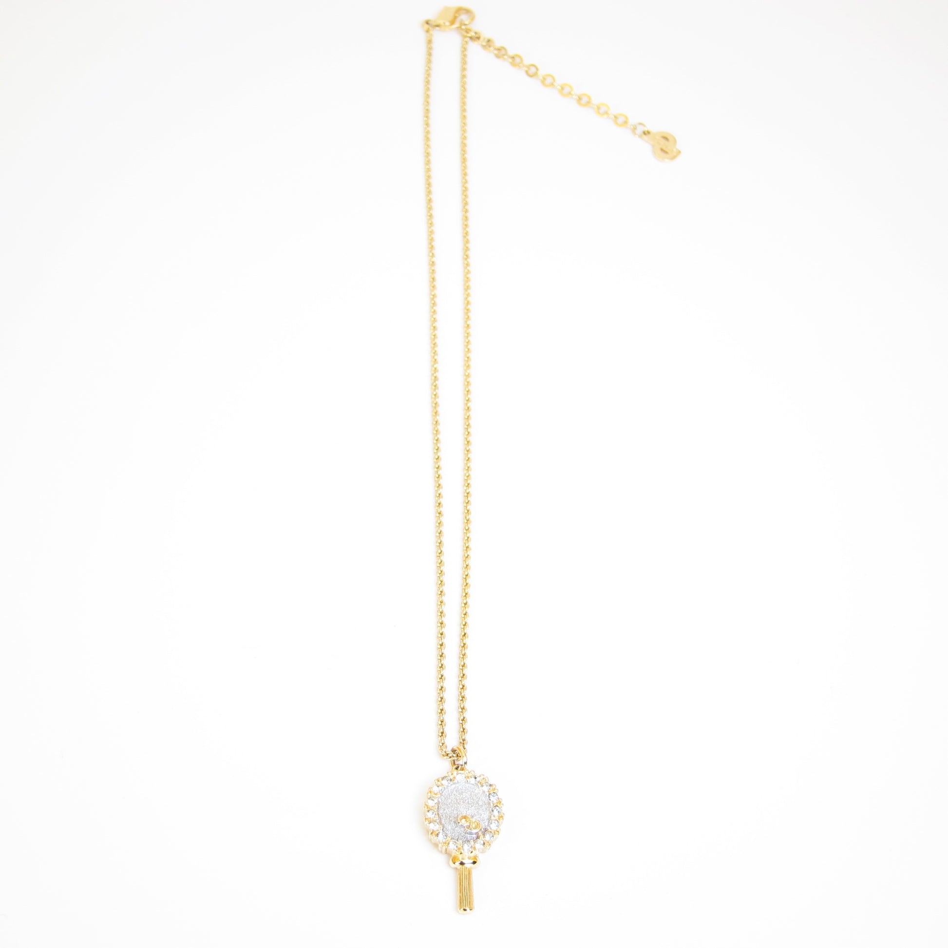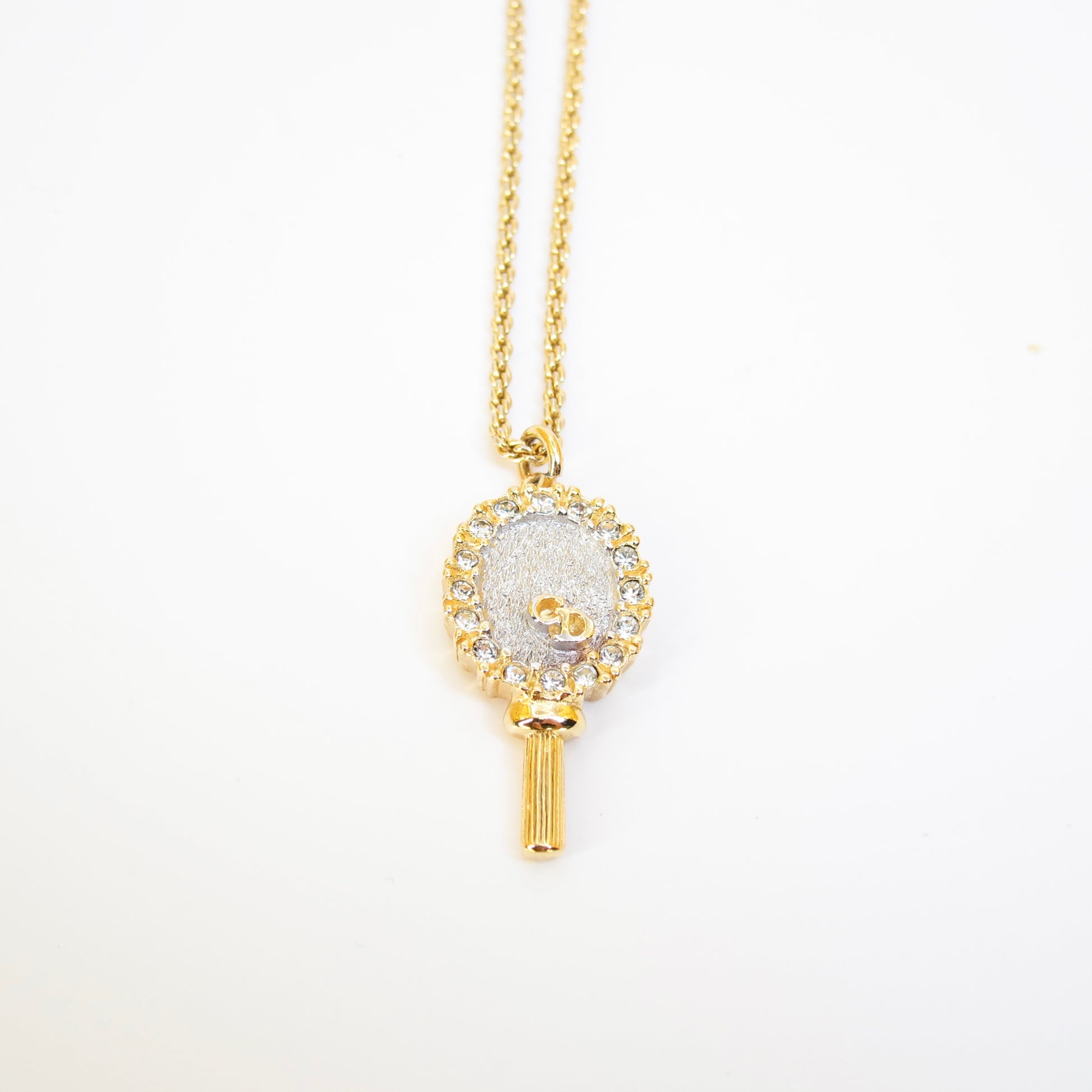 Christian Dior Vintage CD Logo on Mirror with Rhinestone Pendant Golden Necklace