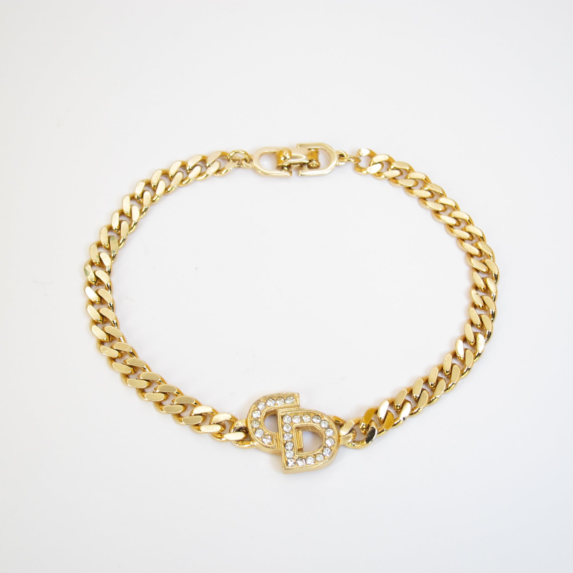 Christian Dior Vintage CD Logo with Rhinestone Golden Bracelet