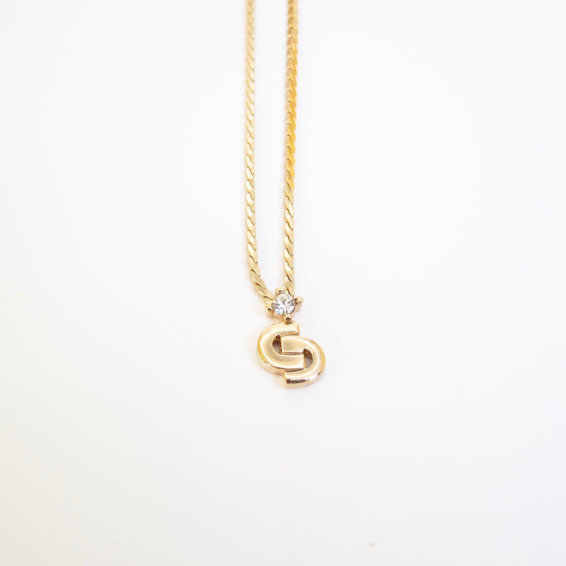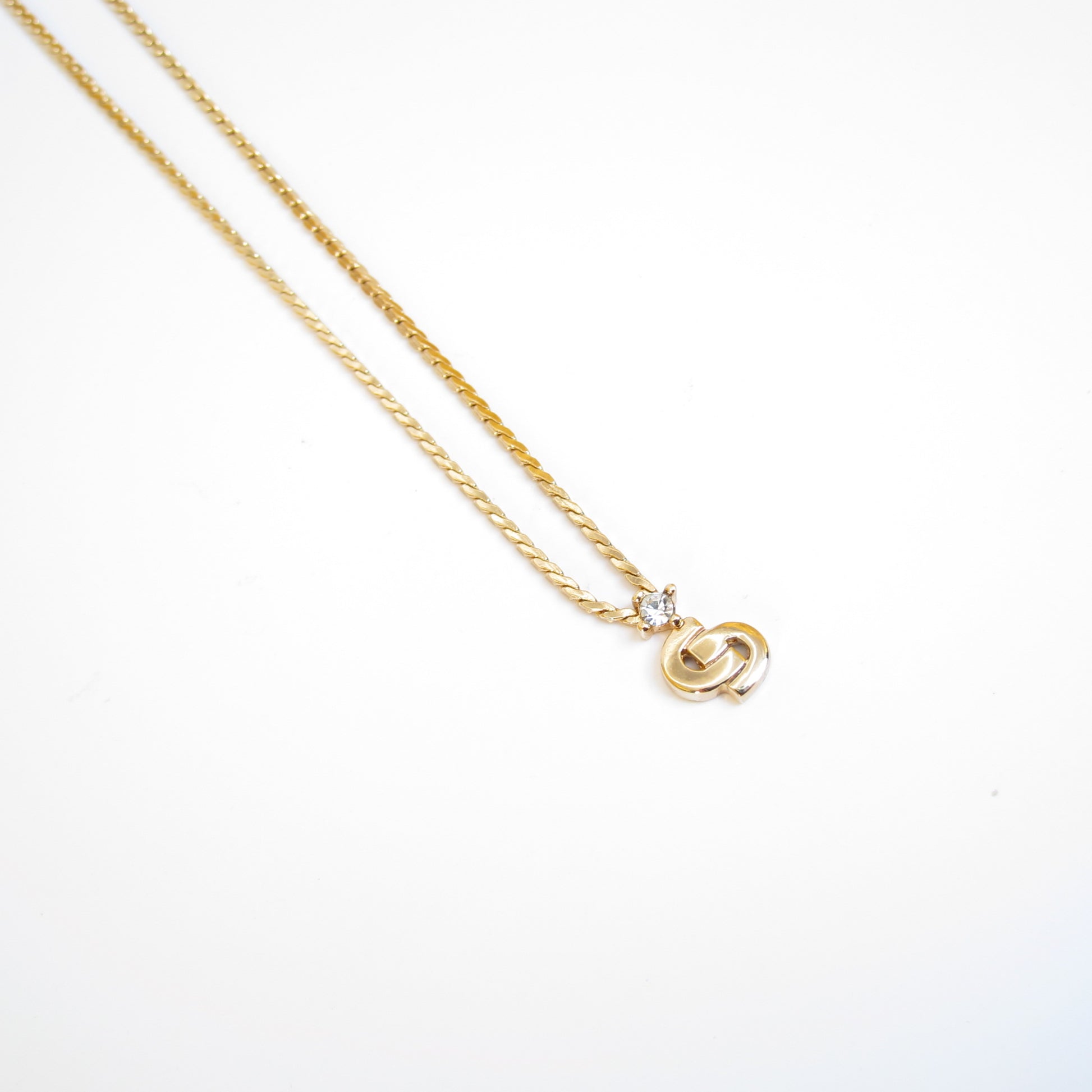 Christian Dior Vintage CD Logo and Rhinestone Golden Necklace