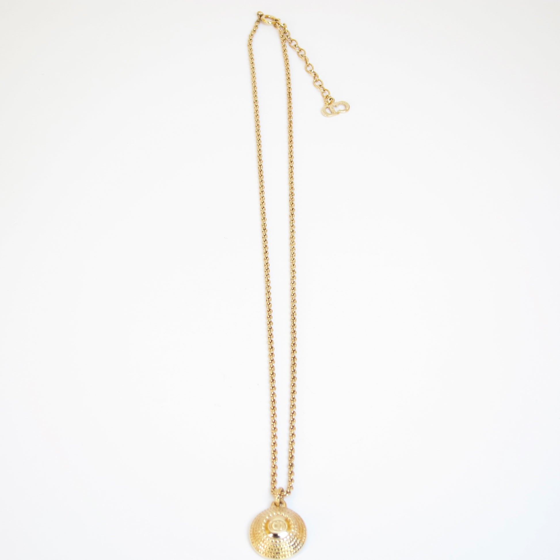 Christian Dior Vintage CD Logo in Circle Pendant Golden Necklace