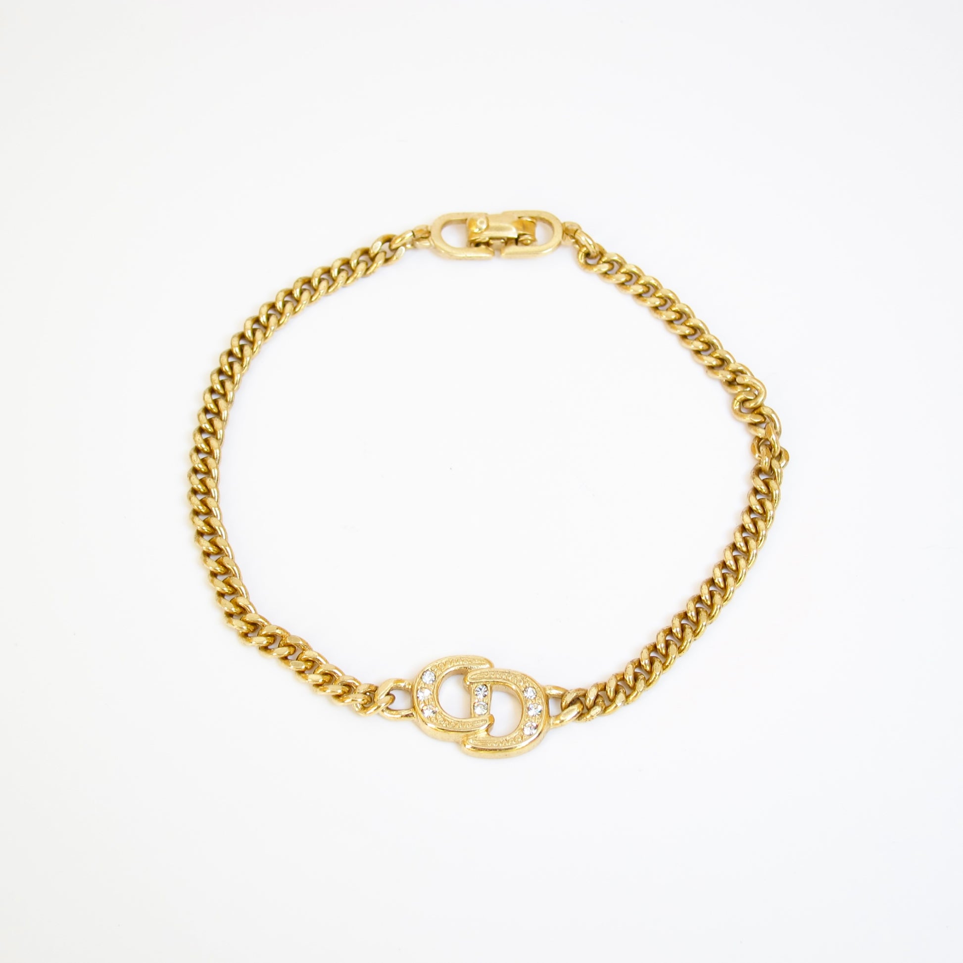 Christian Dior Vintage CD Logo with Rhinestone Golden Bracelet
